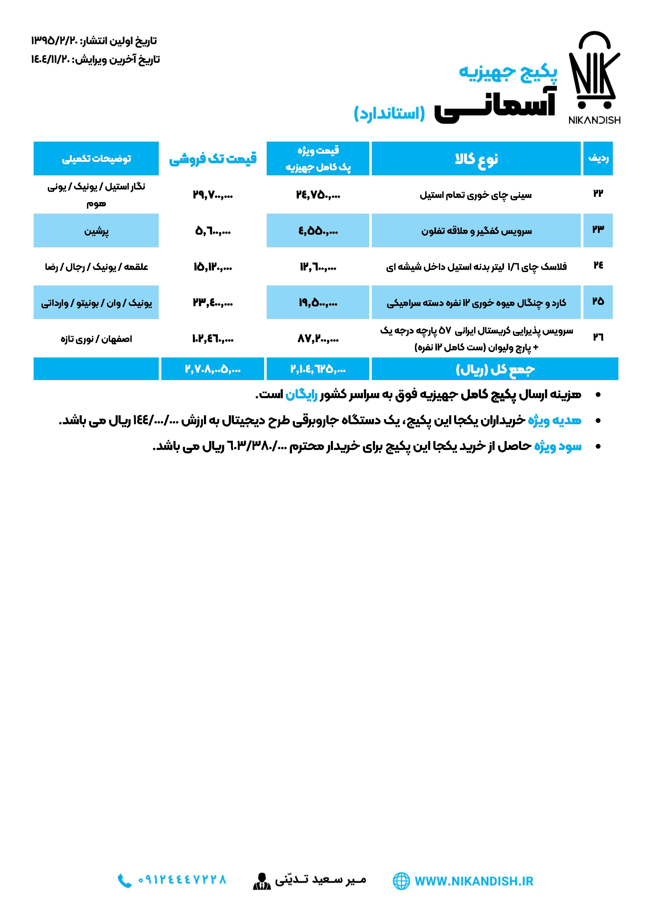 نقد و بررسی پکیج جهیزیه آسمانی (استاندارد)